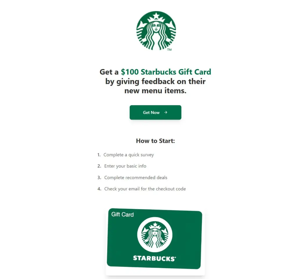 - Victims are lured with the promise of a $100 Starbucks gift card but never receive it.