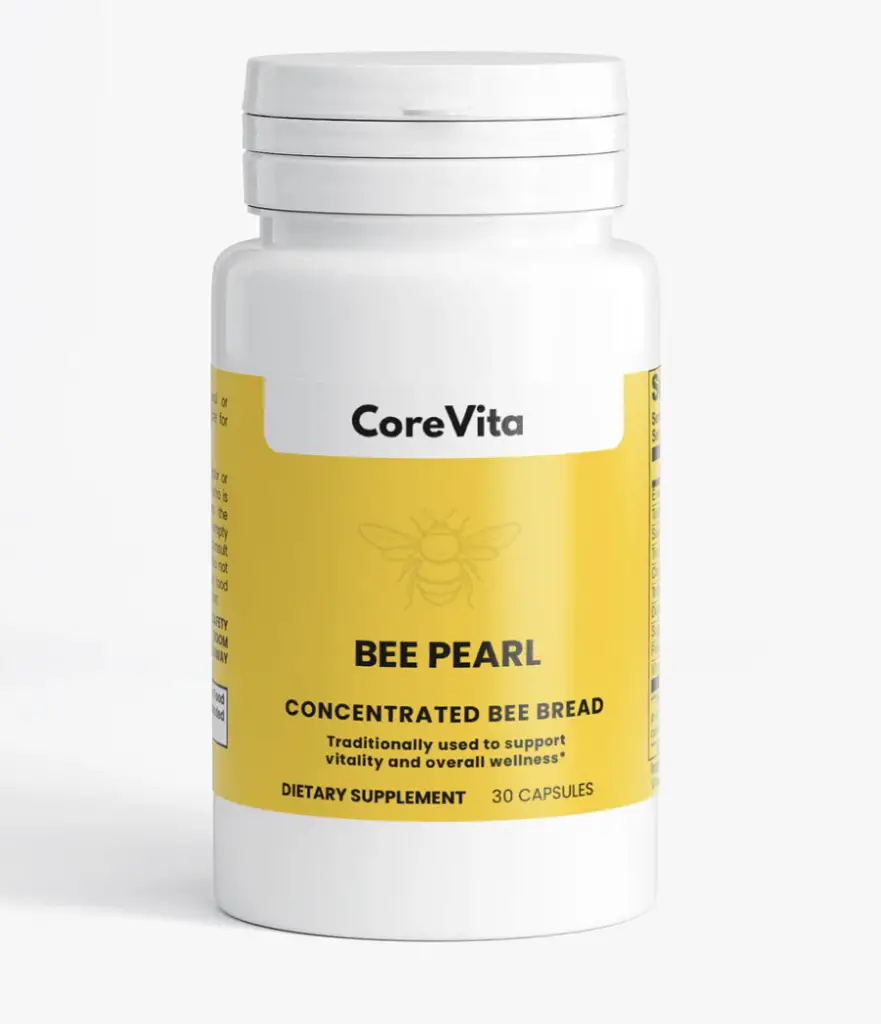 • CoreVita Bee Pearl is marketed as a natural vitality supplement made from fermented bee pollen (“bee bread”).