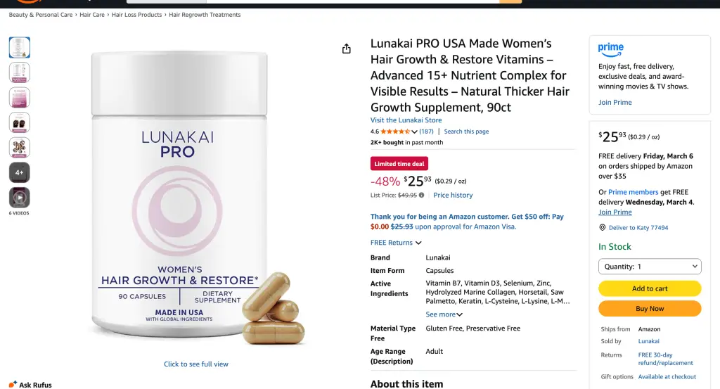 I’ve been using Lunakai Pro for a few weeks and I’m really happy with the results. My hair feels stronger, looks shinier, and I’ve noticed less shedding. The capsules are easy to take and don’t upset my stomach. Great supplement if you’re looking to support hair growth naturally – Elainy.