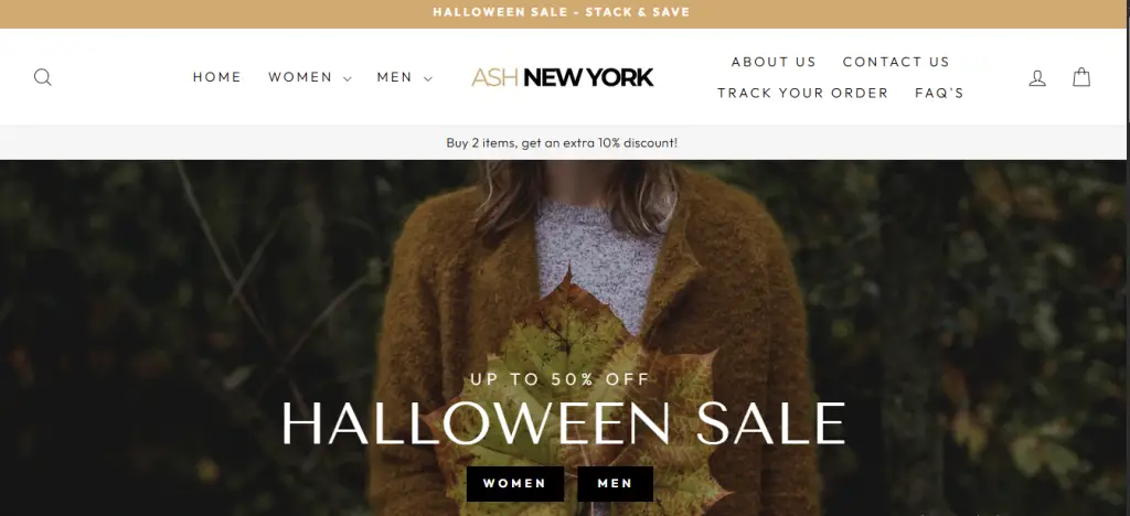 Halloween sale with 50% off on all orders? Ash-NewYork.com has become quite popular for its selective range of clothing items and accessories for both men and women at discounted and affordable prices.