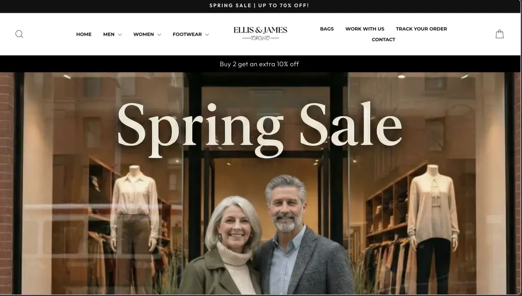 EllisandJamesToronto.com is popular for its discounted sale of expensive-looking and classy clothes and accessories on all orders for men & women.