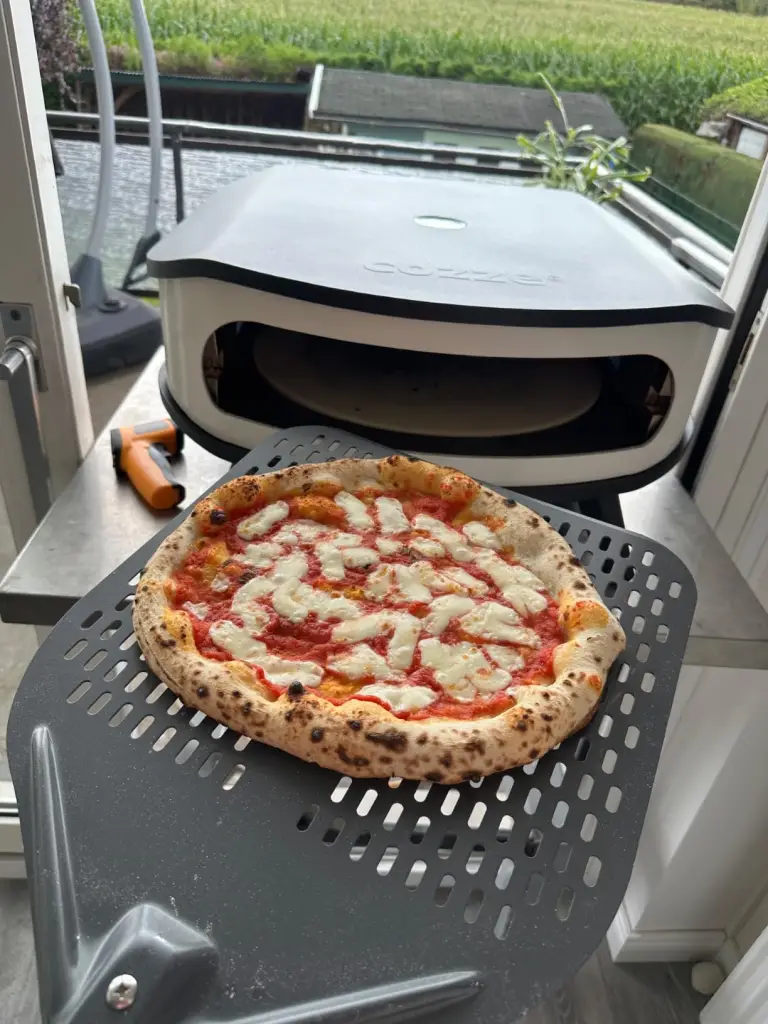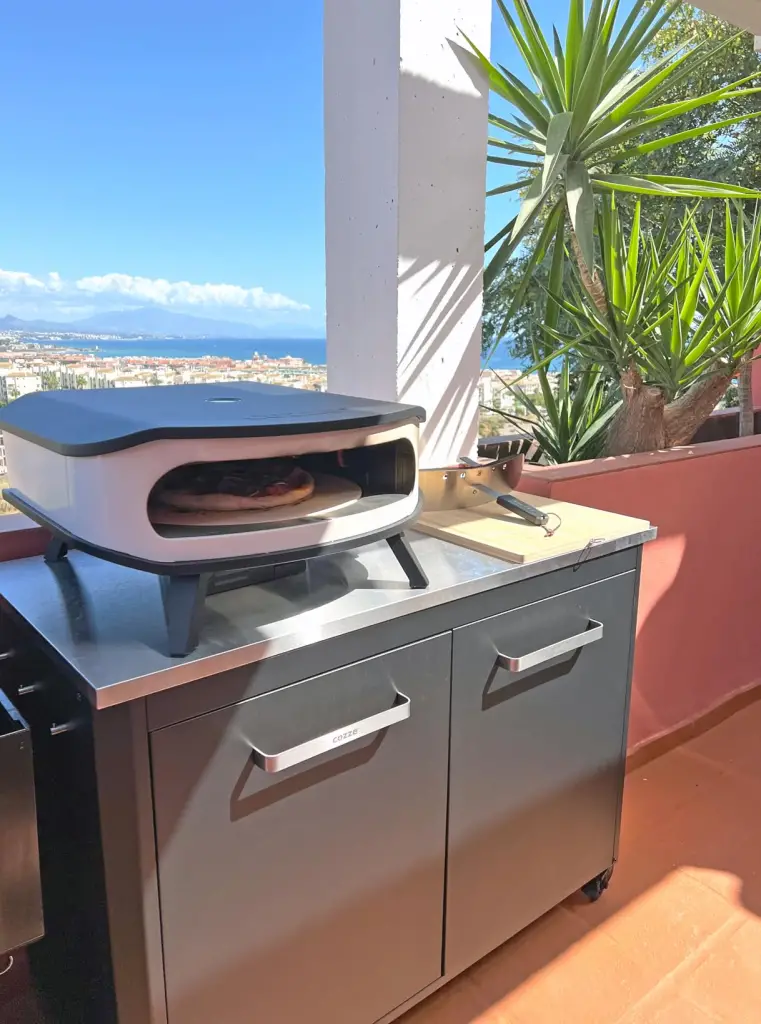 The Cozze pizza oven is a compact outdoor pizza oven designed to cook pizzas at high temperatures (usually around 400–500°C, depending on the model).