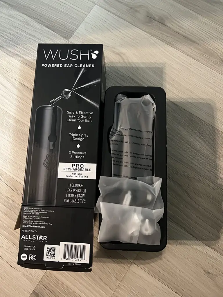 The Wush Pro by Black Wolf is a manual ear cleaning tool that uses a flexible, scoop-like silicone tip designed to scrape and remove earwax. It’s reusable, easy to rinse, and positioned as a safe alternative to cotton swabs… “no pushing wax deeper,” “less irritation,” “more gentle.”
