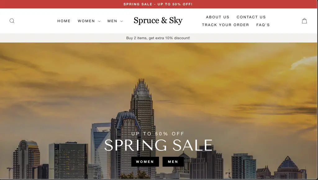 SpruceandSky.com is popular for its discounted sale of expensive-looking and classy clothes and accessories on all orders for men & women.